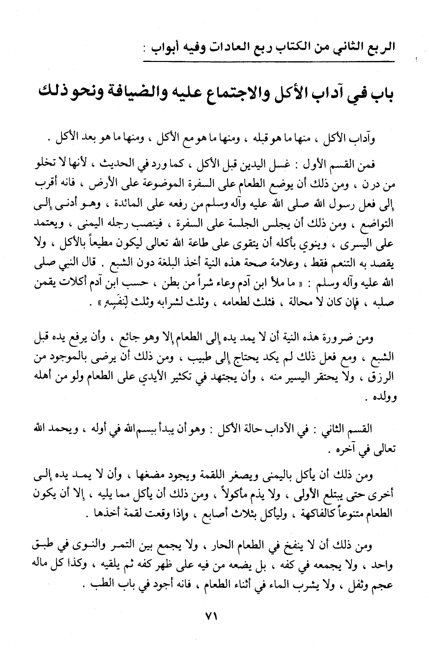 الربع الثاني من الكتاب ربع العادات وفيه أبواب: