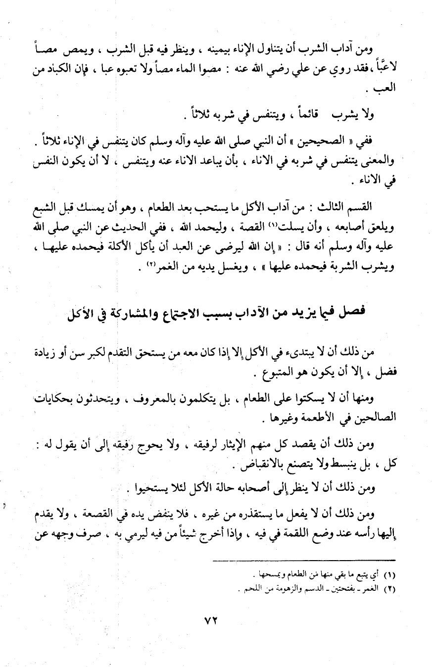 1 ـ فصل فيما يزيد من الآداب بسبب الاجتماع والمشاركة فى الأكل