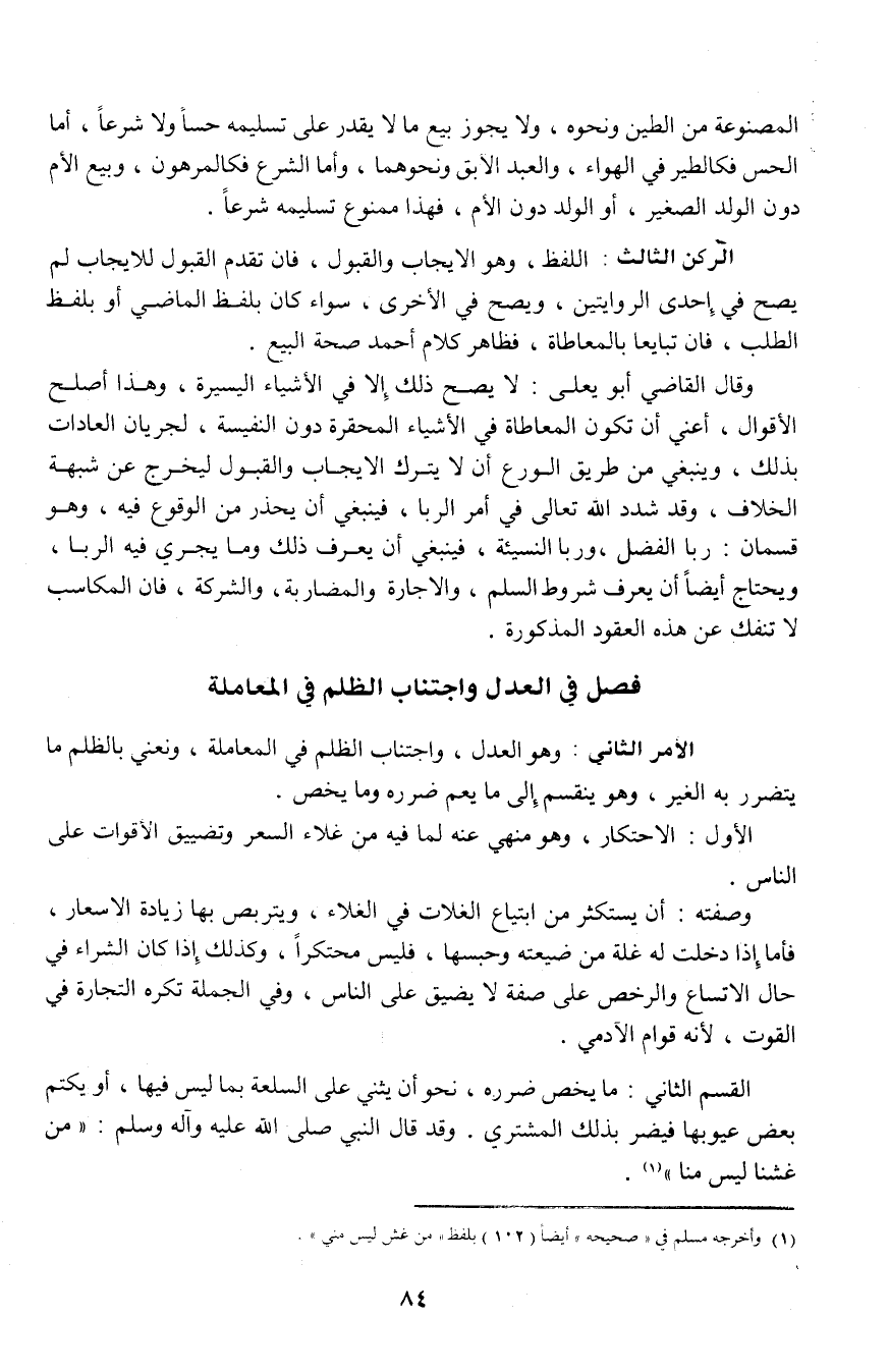 2 ـ فصل في العدل واجتناب الظلم في المعاملة