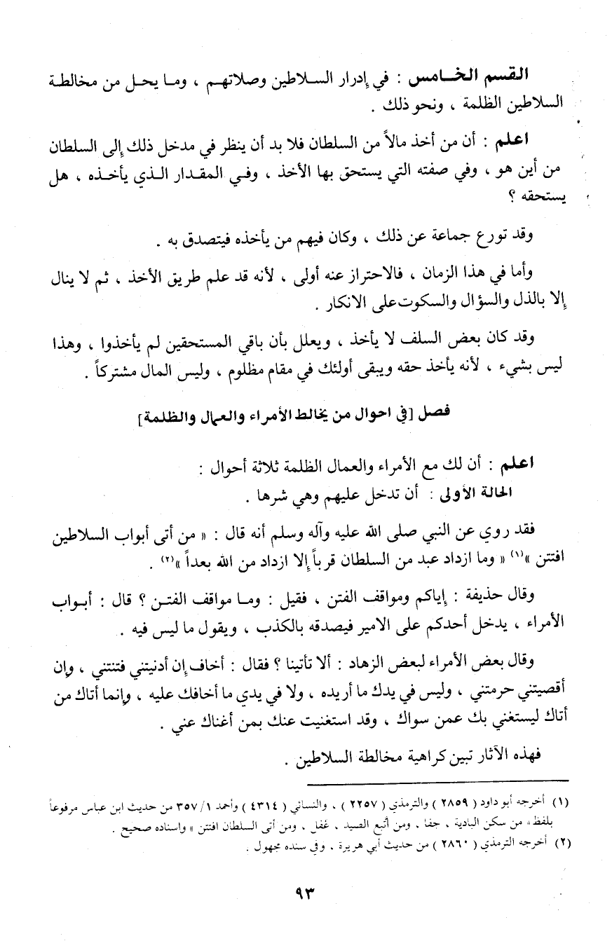 القسم الخامس: في إدرار السلاطين وصلاتهم، وما يحل من مخالطة السلاطين الظلمة، ونحو ذلك.