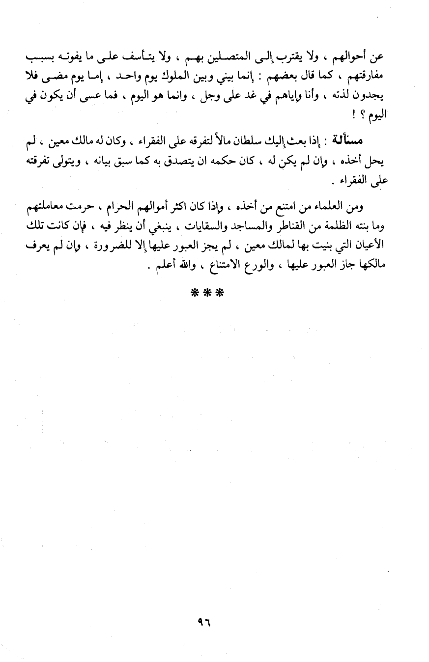 ومن العلماء من امتنع من أخذه، وإذا كان اكثر أموالهم الحرام، حرمت معاملتهم وما بنته الظلمة من القناطر والمساجد والسقايات، ينبغي أن ينظر فيه، فإن كانت تلك الأعيان التي بنيت بها لمالك معين، لم يجز العبور عليها إلا للضرورة، وإن لم يعرف مالكها جاز العبور عليها، والورع الامتناع، والله أعلم.