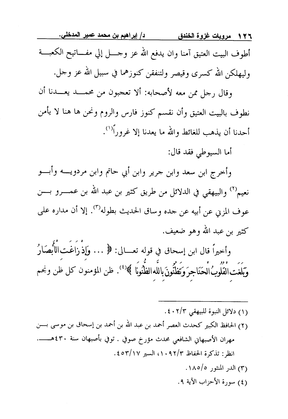 وأخيراً قال ابن إسحاق في قوله تعالى: {… وَإِذْ زَاغَتِ الْأَبْصَارُ وَبَلَغَتِ الْقُلُوبُ الْحَنَاجِرَ وَتَظُنُّونَ بِاللَّهِ الظُّنُونَا} 4. ظن المؤمنون كل ظن ونجم