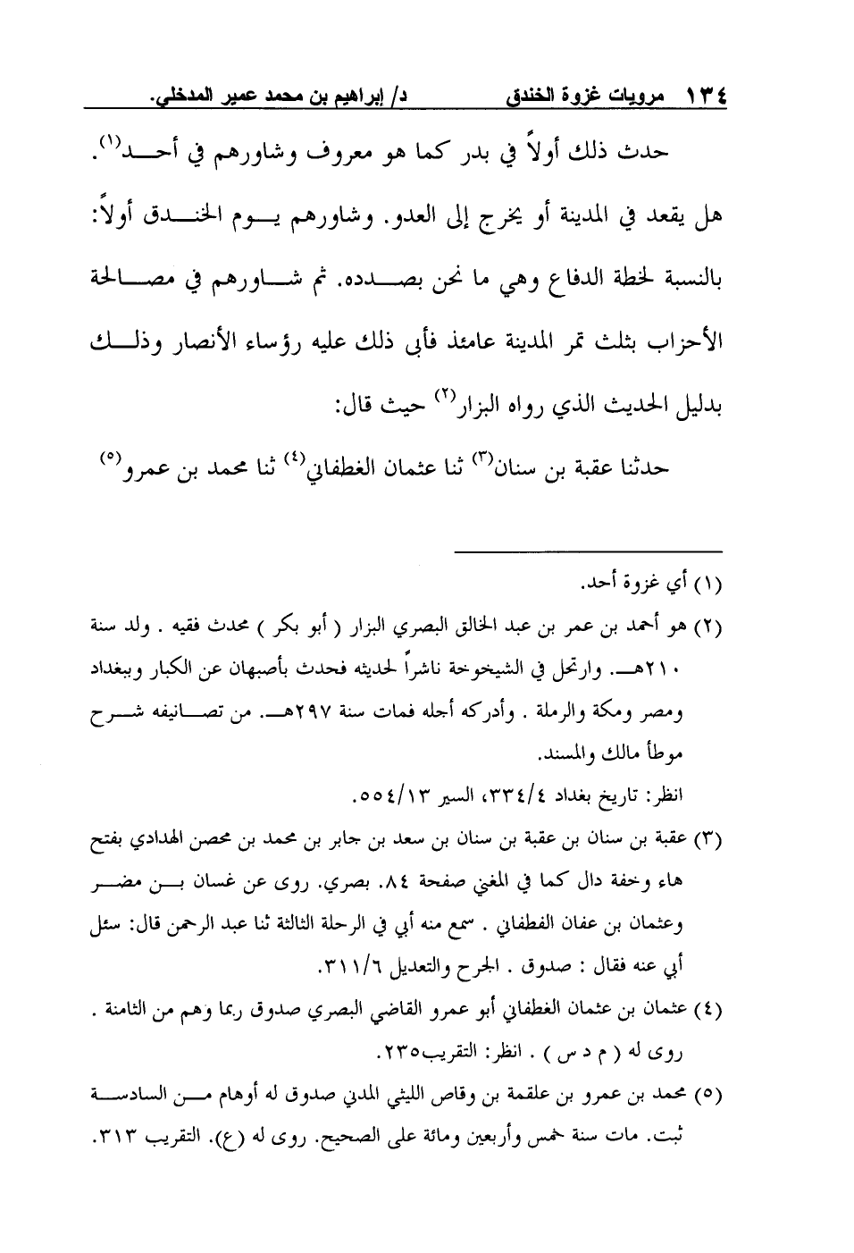 2 هو أحمد بن عمر بن عبد الخالق البصري البزار (أبو بكر) محدث فقيه. ولد سنة 210هـ. وارتحل في الشيخوخة ناشراً لحديثه فحدث بأصبهان عن الكبار وببغداد ومصر ومكة والرملة. وأدركه أجله فمات سنة 297هـ. من تصانيفه شرح موطأ مالك والمسند. انظر: تاريخ بغداد 4/334، السير 13/554.