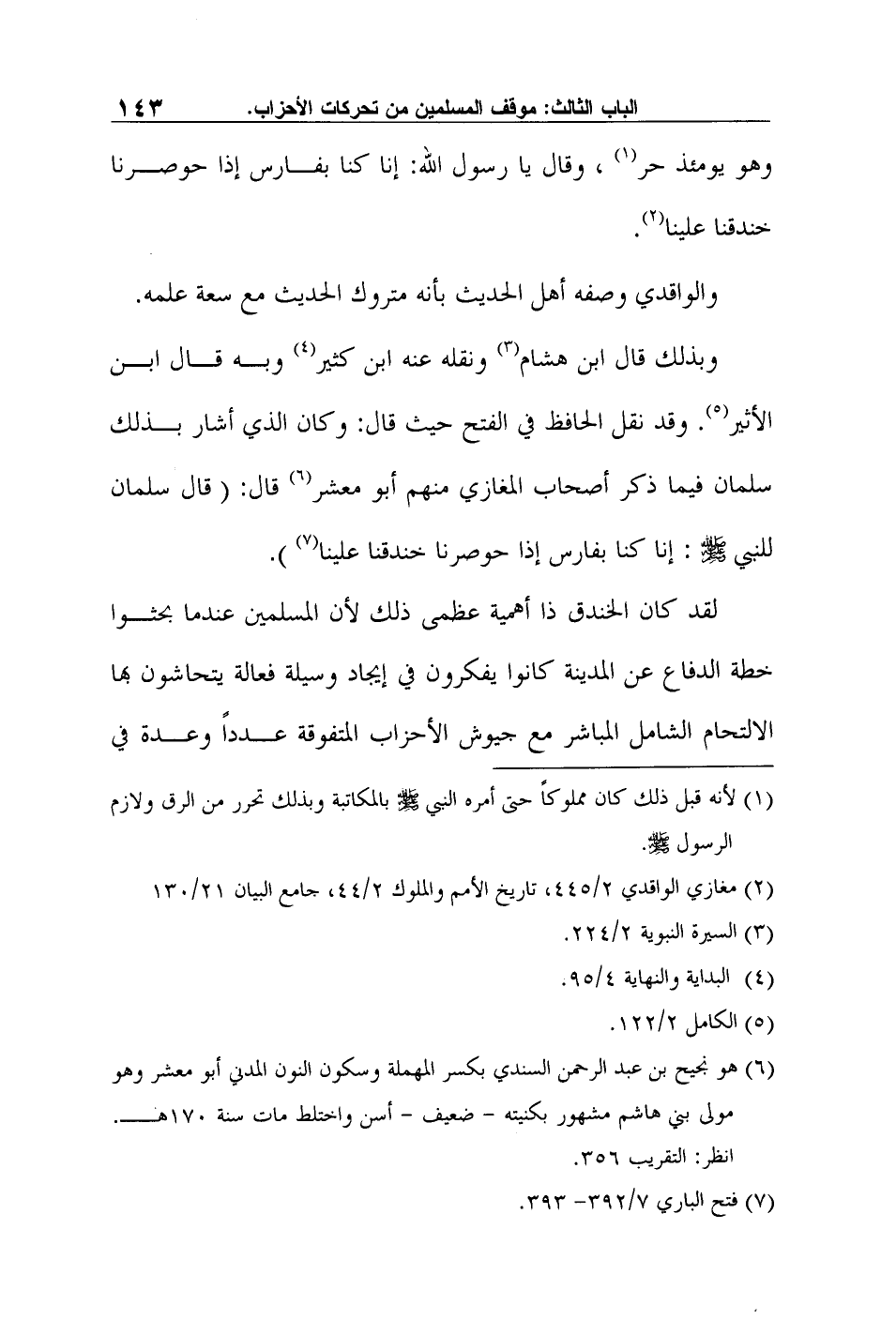 وبذلك قال ابن هشام3 ونقله عنه ابن كثير4 وبه قال ابن الأثير5. وقد نقل الحافظ في الفتح حيث قال: وكان الذي أشار بذلك سلمان فيما ذكر أصحاب المغازي منهم أبو معشر6 قال: "قال سلمان للنبي صلى الله عليه وسلم: إنا كنا بفارس إذا حوصرنا خندقنا علينا"7.