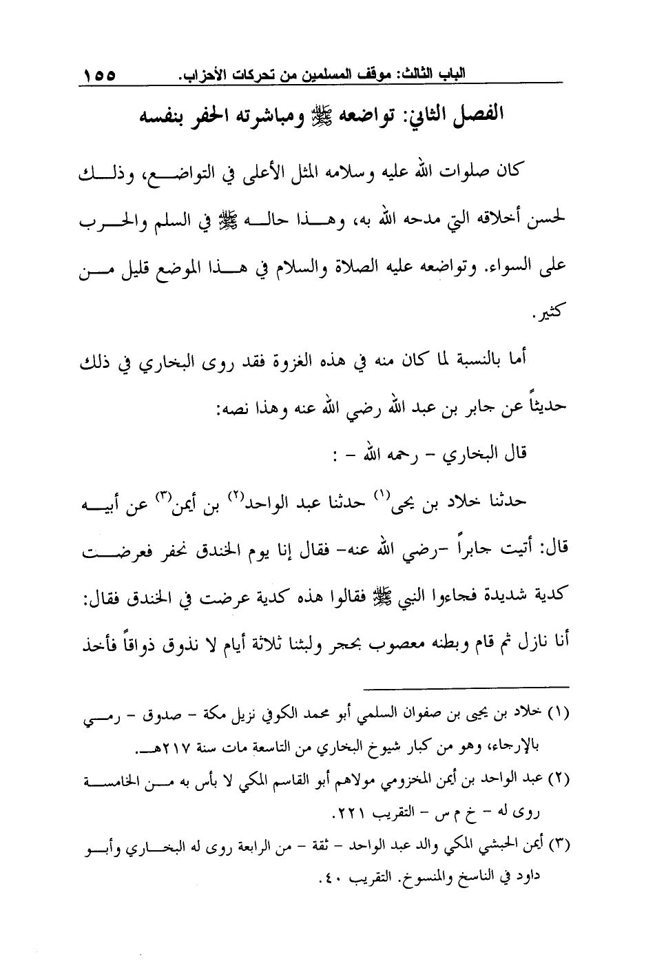 الفصل الثاني: تواضعه صلى الله عليه وسلم ومباشرته الحفر بنفسه