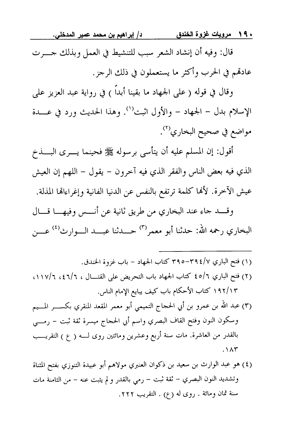 1 فتح الباري 7/394-395 كتاب الجهاد - باب غزوة الخندق.