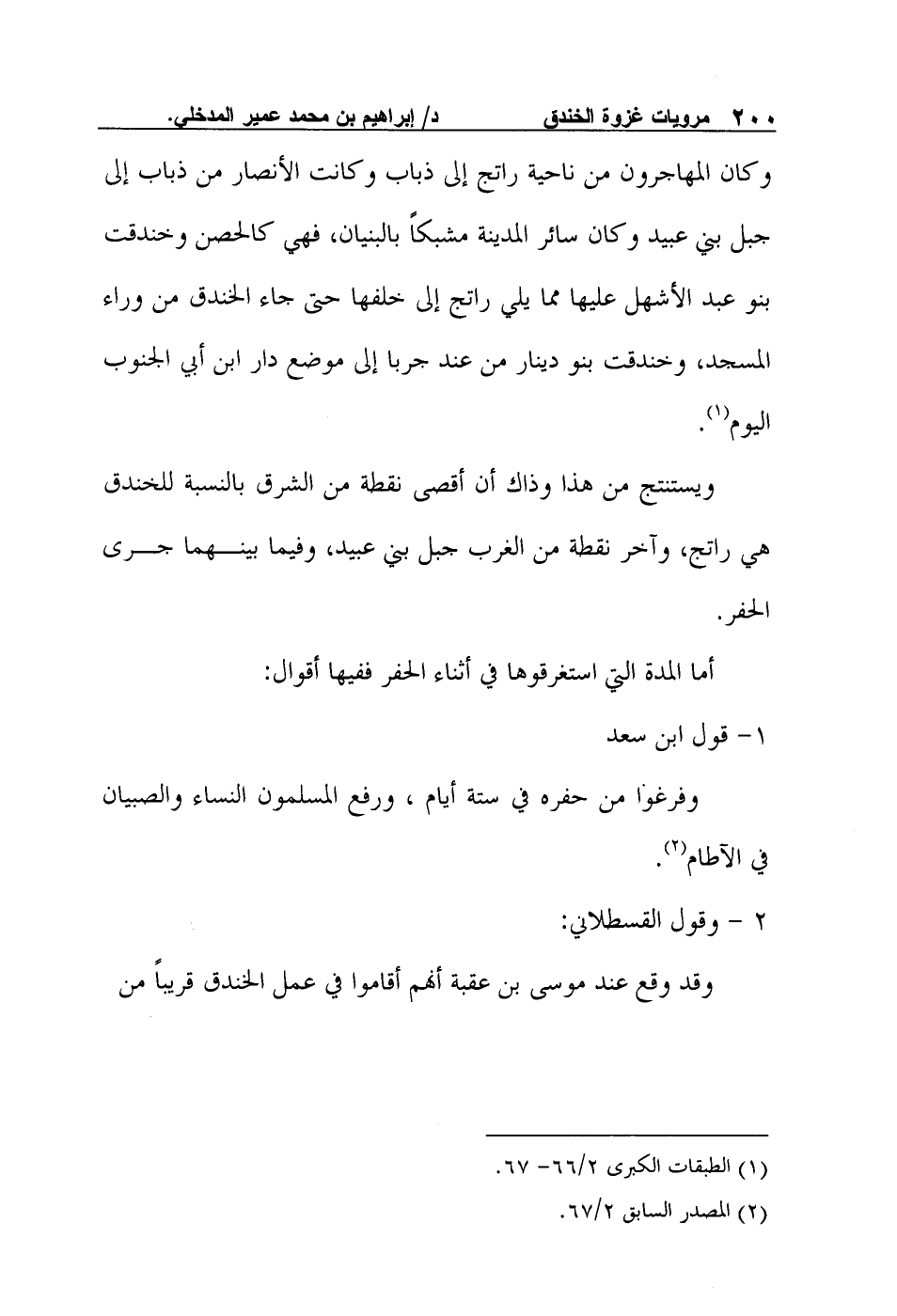 1- قول ابن سعد "وفرغوا من حفره في ستة أيام، ورفع المسلمون النساء والصبيان في الآطام"2.