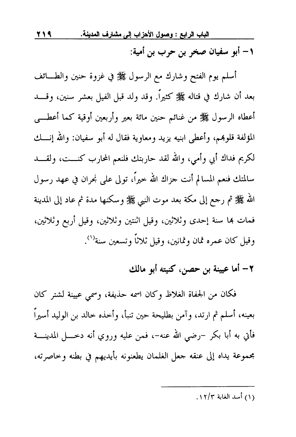 2- أما عيينة بن حصن، كنيته أبو مالك