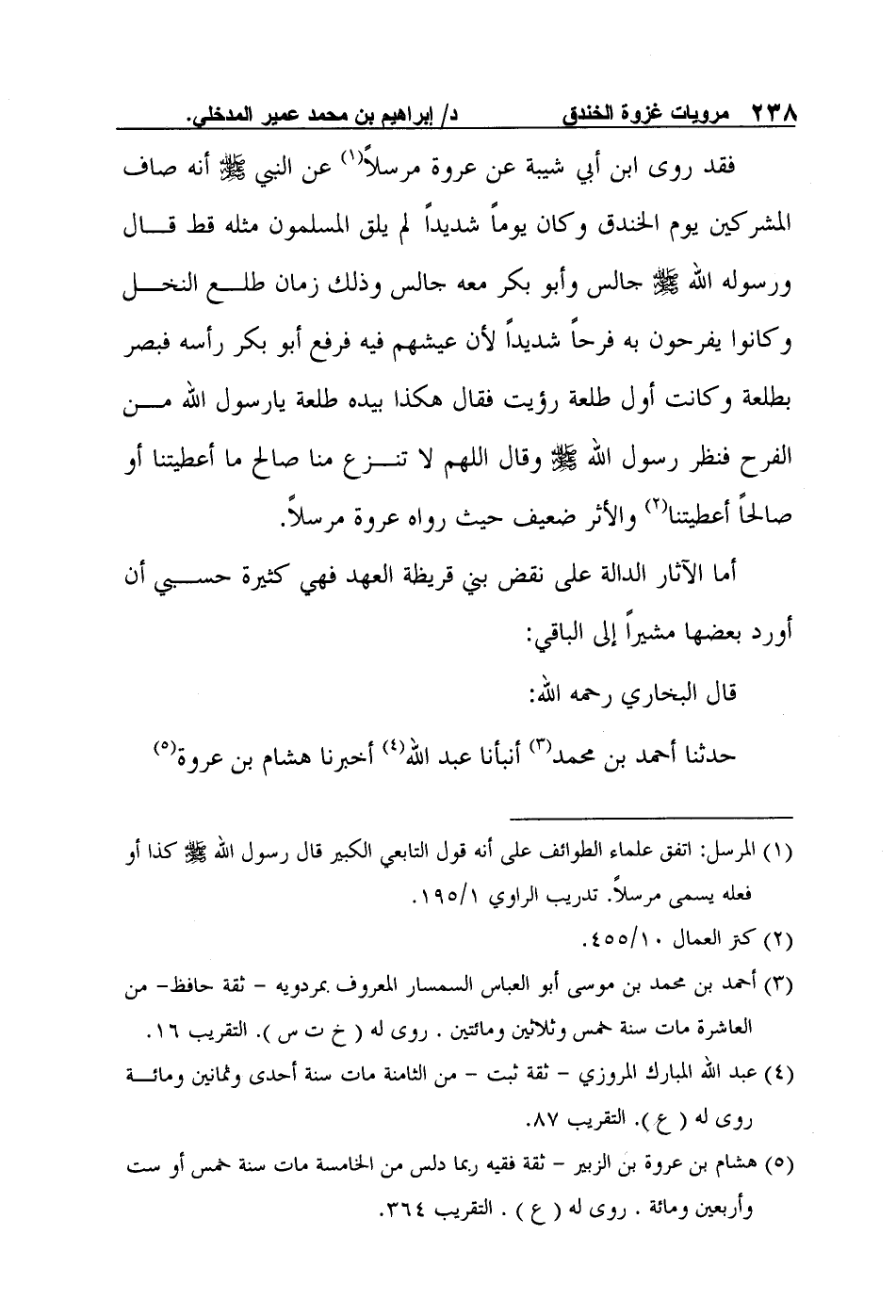 قال البخاري رحمه الله: حدثنا أحمد بن محمد3 أنبأنا عبد الله4 أخبرنا هشام بن عروة5