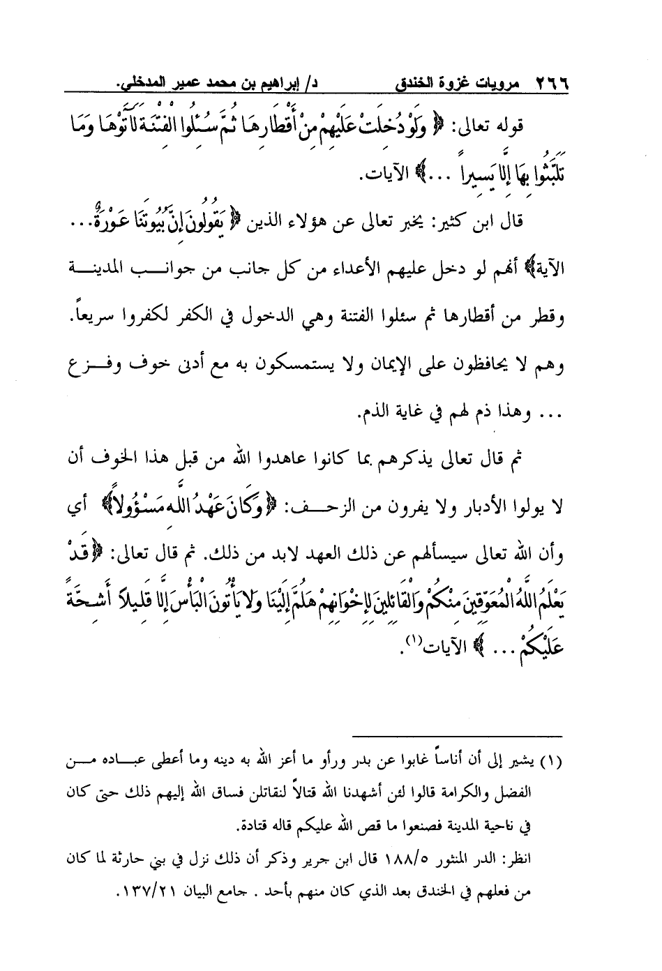 1 يشير إلى أن أناساً غابوا عن بدر ورأو ما أعز الله به دينه وما أعطى عباده من الفضل والكرامة قالوا لئن أشهدنا الله قتالاً لنقاتلن فساق الله إليهم ذلك حتى كان في ناحية المدينة فصنعوا ما قص الله عليكم قاله قتادة. انظر: الدر المنثور 5/188 قال ابن جرير وذكر أن ذلك نزل في بني حارثة لما كان من فعلهم في الخندق بعد الذي كان منهم بأحد. جامع البيان 21/137.