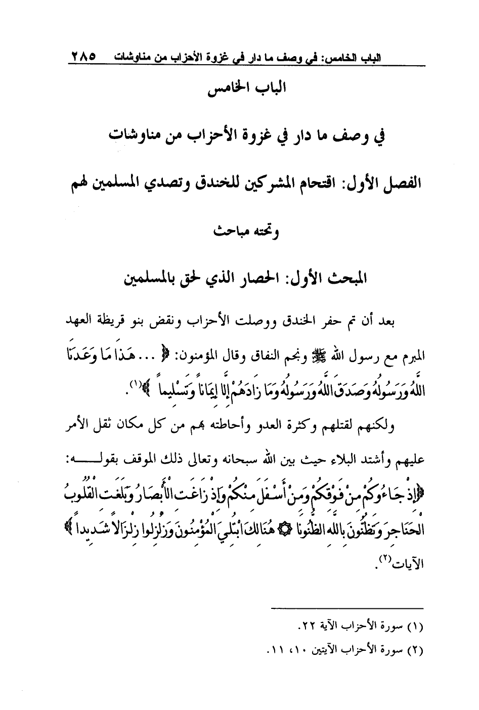 الباب الخامس: وصف ما دار في غزوة الأحزاب من مناوشات
