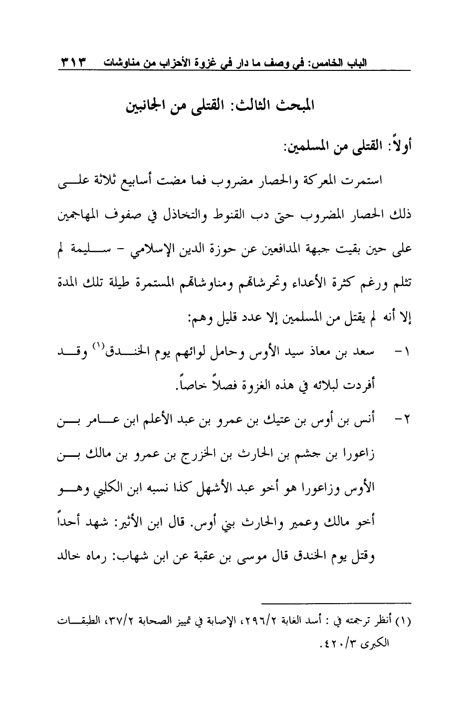 1- سعد بن معاذ سيد الأوس وحامل لوائهم يوم الخندق1 وقد أفردت لبلائه في هذه الغزوة فصلاً خاصاً.