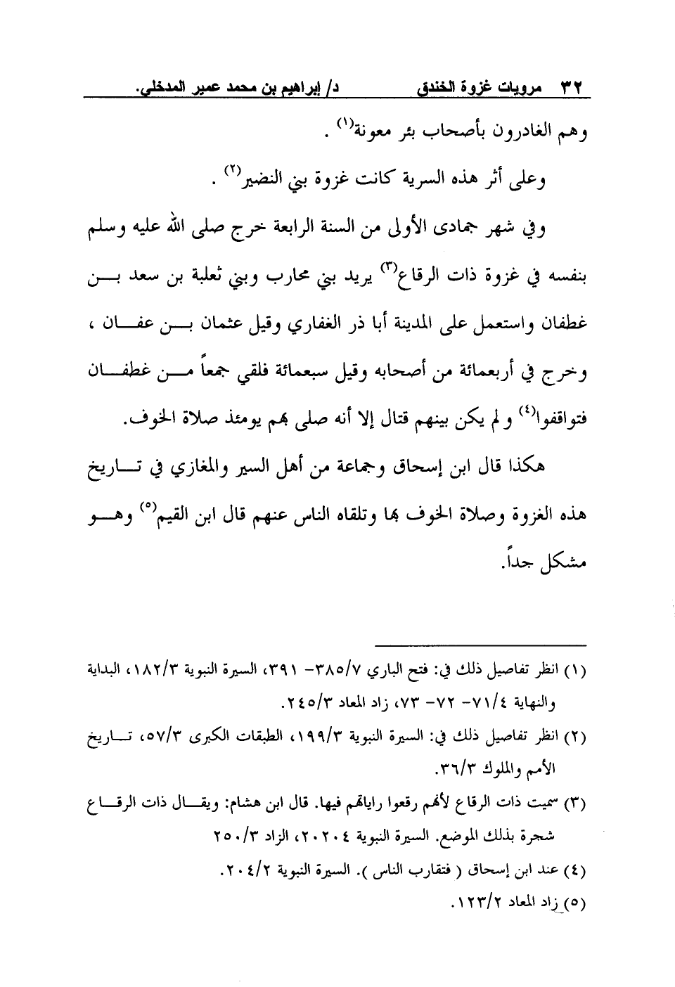 هكذا قال ابن إسحاق وجماعة من أهل السير والمغازي في تاريخ هذه الغزوة وصلاة الخوف بها وتلقاه الناس عنهم قال ابن القيم5 وهو مشكل جداً.