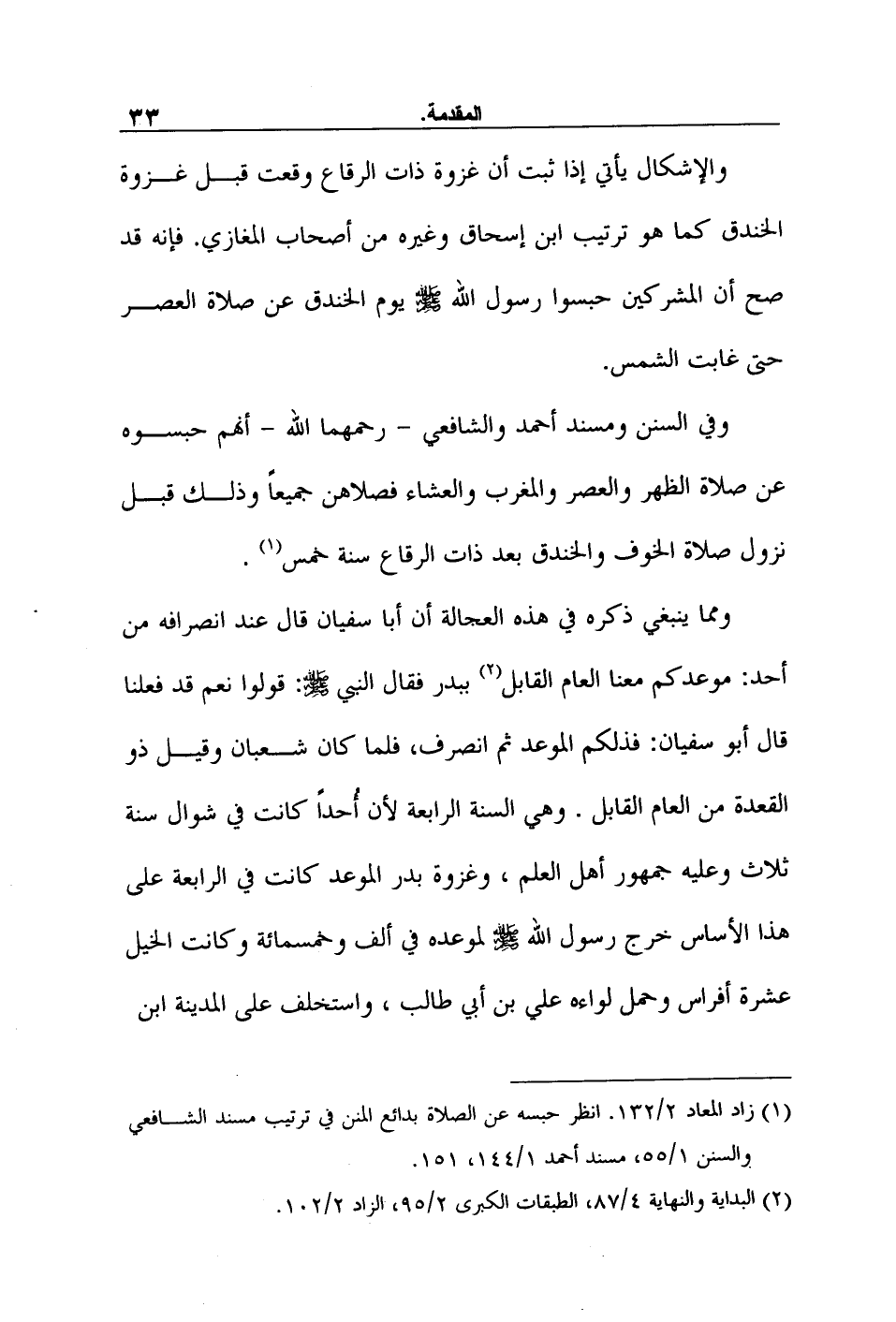 1 زاد المعاد 2/132. انظر حبسه عن الصلاة بدائع المنن في ترتيب مسند الشافعي والسنن 1/55، مسند أحمد 1/144، 151.