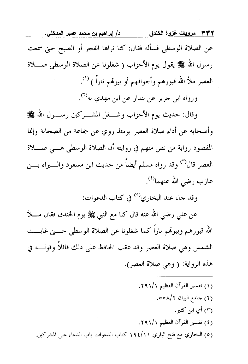 وقال: "حديث يوم الأحزاب وشغل المشركين رسول الله صلى الله عليه وسلم وأصحابه عن أداء صلاة العصر يومئذ روي عن جماعة من الصحابة وإنما المقصود رواية من نص منهم في روايته أن الصلاة الوسطى هي صلاة العصر" قال3 وقد رواه مسلم أيضاً من حديث ابن مسعود والبراء بن عازب رضي الله عنهما4.