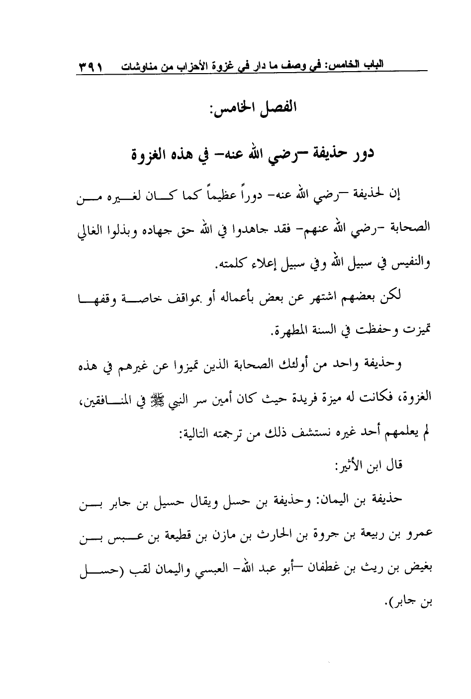 الفصل الخامس: دور حذيفة –رضي الله عنه- في هذه الغزوة