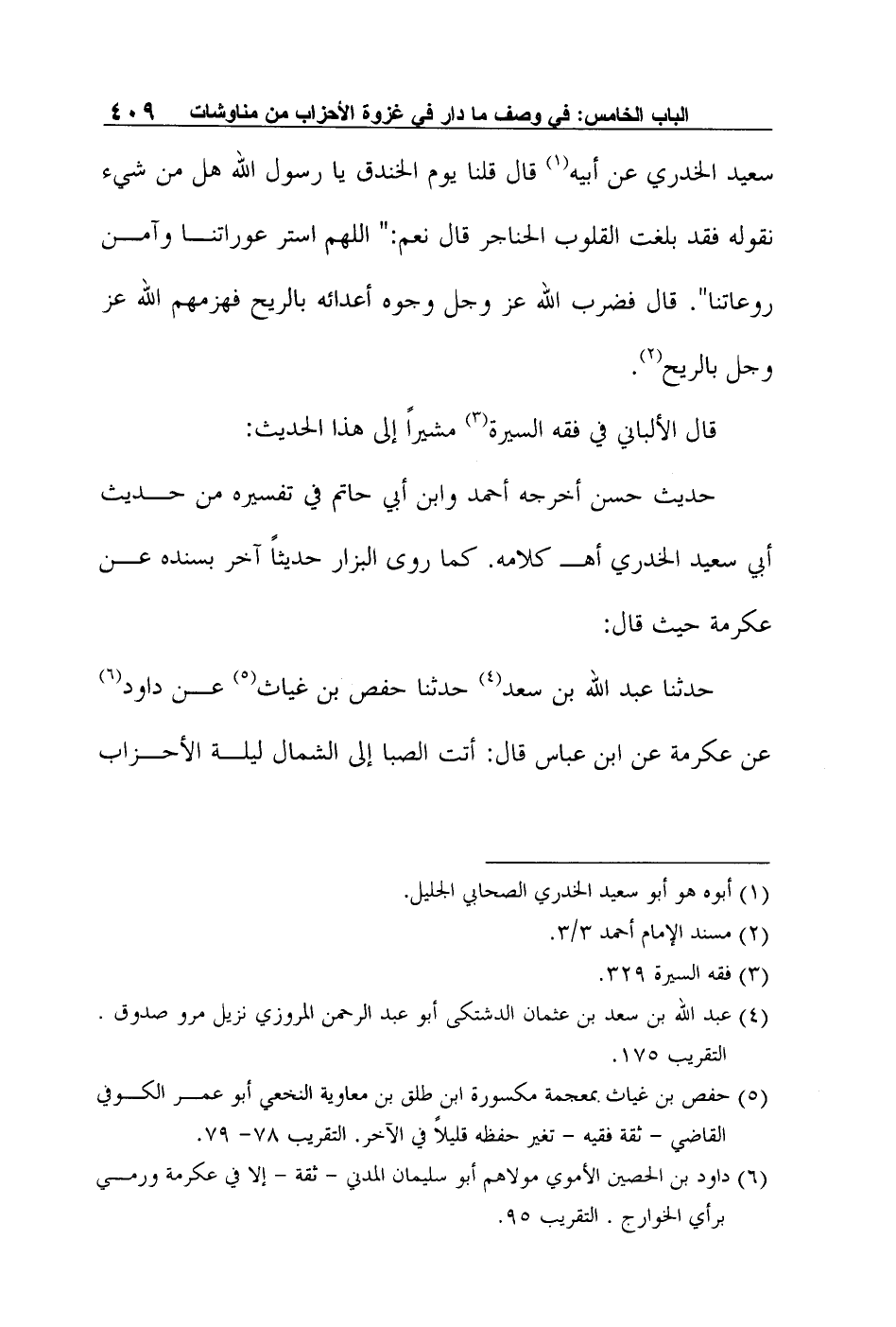 حدثنا عبد الله بن سعد4 حدثنا حفص بن غياث5 عن داود6 عن عكرمة عن ابن عباس قال: "أتت الصبا إلى الشمال ليلة الأحزاب