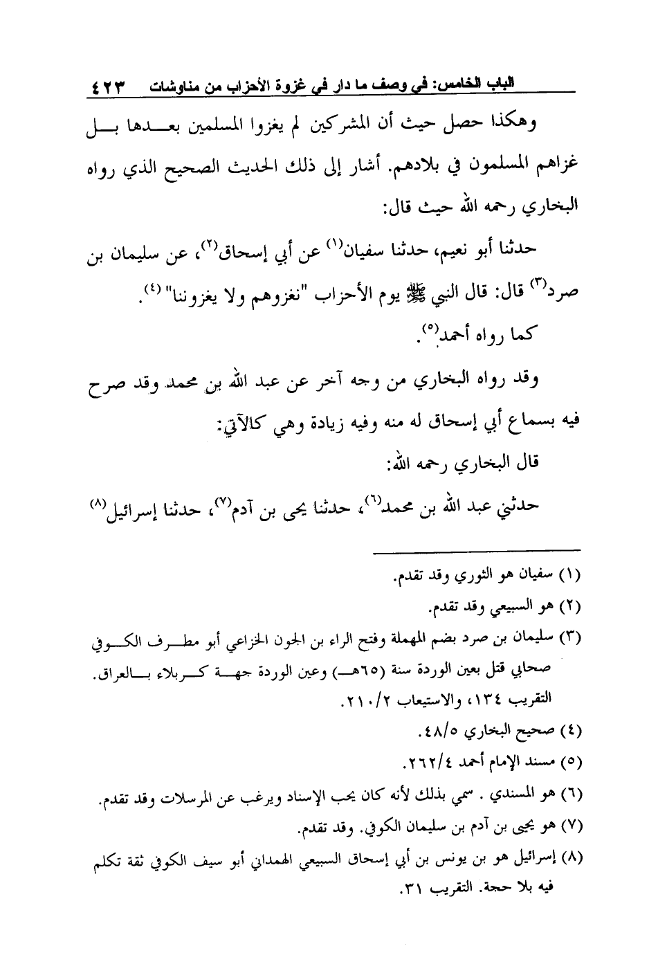 قال البخاري رحمه الله: حدثني عبد الله بن محمد6، حدثنا يحى بن آدم7، حدثنا إسرائيل8