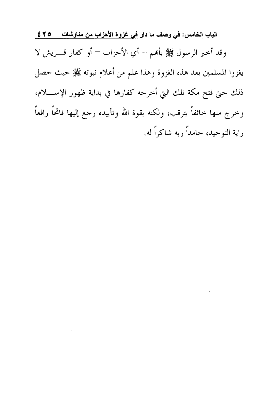 وقد أخبر الرسول صلى الله عليه وسلم بأنهم – أي الأحزاب – أو كفار قريش لا يغزوا المسلمين بعد هذه الغزوة وهذا علم من أعلام نبوته صلى الله عليه وسلم حيث حصل ذلك حتى فتح مكة تلك التي أخرجه كفارها في بداية ظهور الإسلام، وخرج منها خائفاً يترقب، ولكنه بقوة الله وتأييده رجع إليها فاتحاً رافعاً راية التوحيد، حامداً ربه شاكراً له.