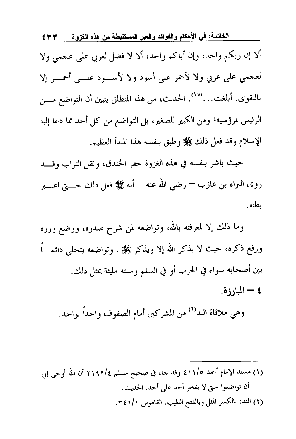 وهي ملاقاة الند2 من المشركين أمام الصفوف واحداً لواحد.