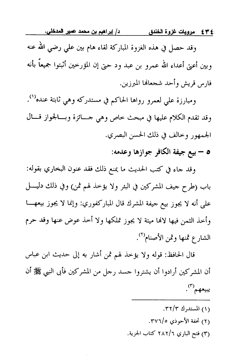 وقد جاء في كتب الحديث ما يمنع ذلك فقد عنون البخاري بقوله: باب (طرح جيف المشركين في البئر ولا يؤخذ لهم ثمن) وفي ذلك دليل على أنه لا يجوز بيع جيفة المشرك قال المباركفوري: وإنما لا يجوز بيعها وأخذ الثمن فيها لانها ميتة لا يجوز تملكها ولا أخذ عوض عنها وقد حرم الشارع ثمنها وثمن الأصنام2.