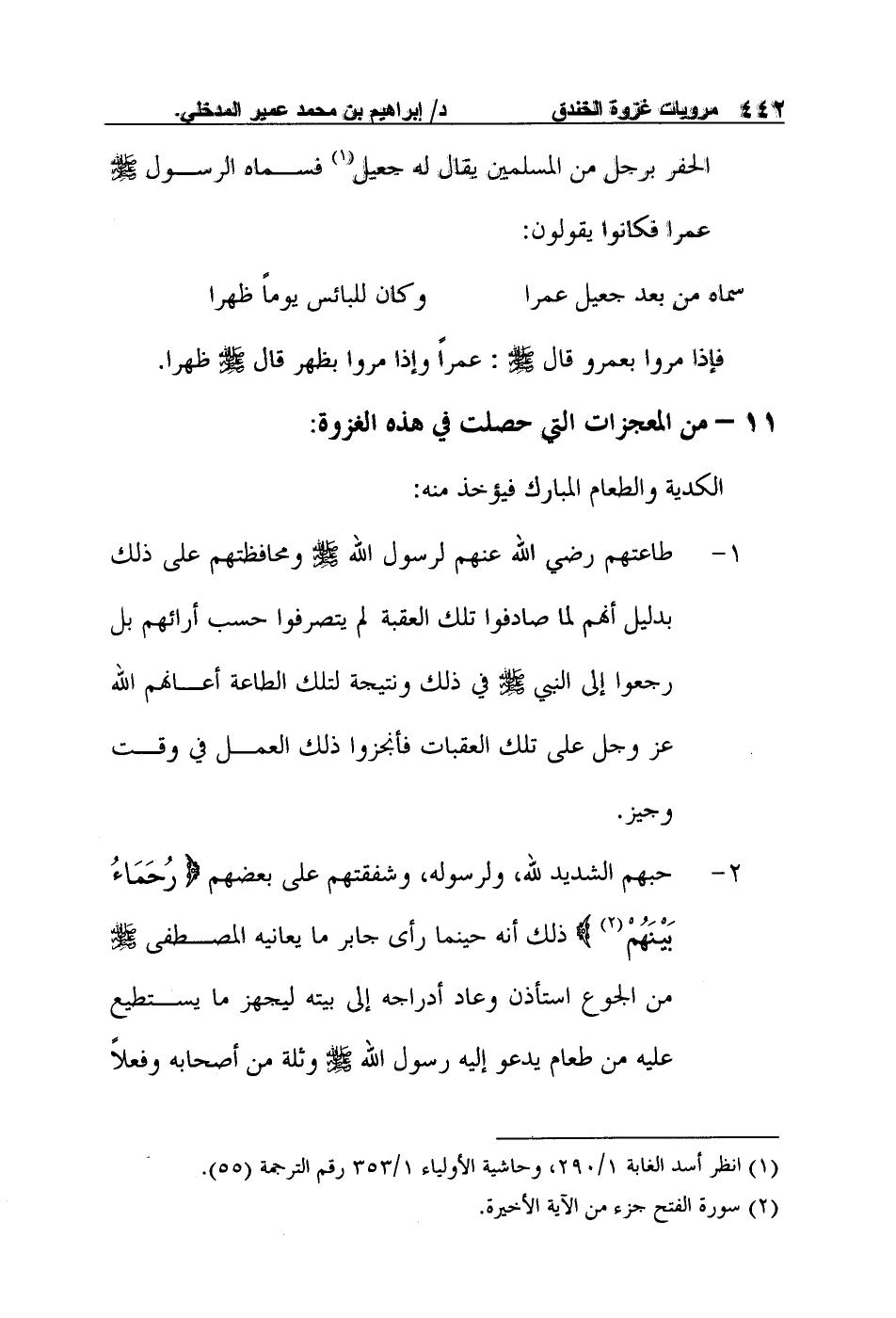 الحفر برجل من المسلمين يقال له جعيل1 فسماه الرسول صلى الله عليه وسلم عمرا فكانوا يقولون: