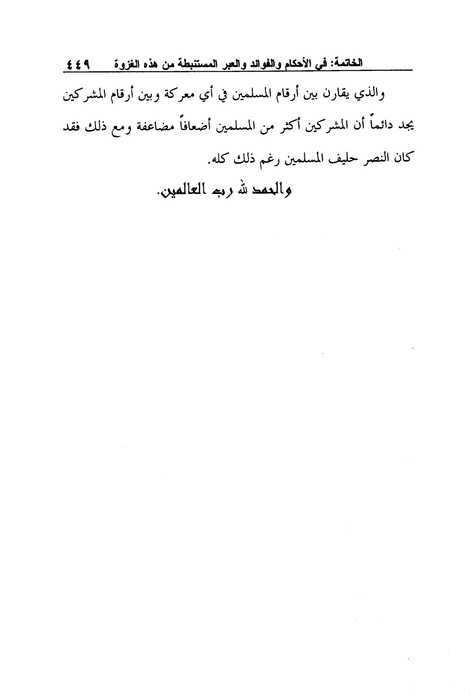 والذي يقارن بين أرقام المسلمين في أي معركة وبين أرقام المشركين يجد دائماً أن المشركين أكثر من المسلمين أضعافاً مضاعفة ومع ذلك فقد كان النصر حليف المسلمين رغم ذلك كله. والحمد لله رب العالمين.