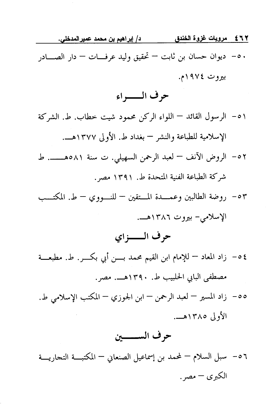 54- زاد المعاد – للإمام ابن القيم محمد بن أبي بكر. ط. مطبعة مصطفى البابي الحلبيب ط. 1390هـ. مصر.