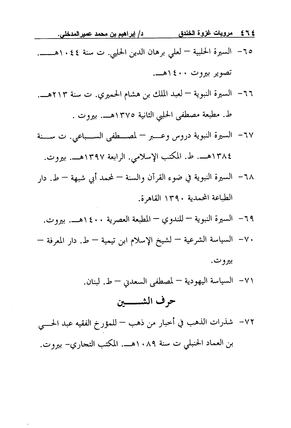 68- السيرة النبوية في ضوء القرآن والسنة – لمحمد أبي شبهة – ط. دار الطباعة المحمدية 1390 القاهرة.