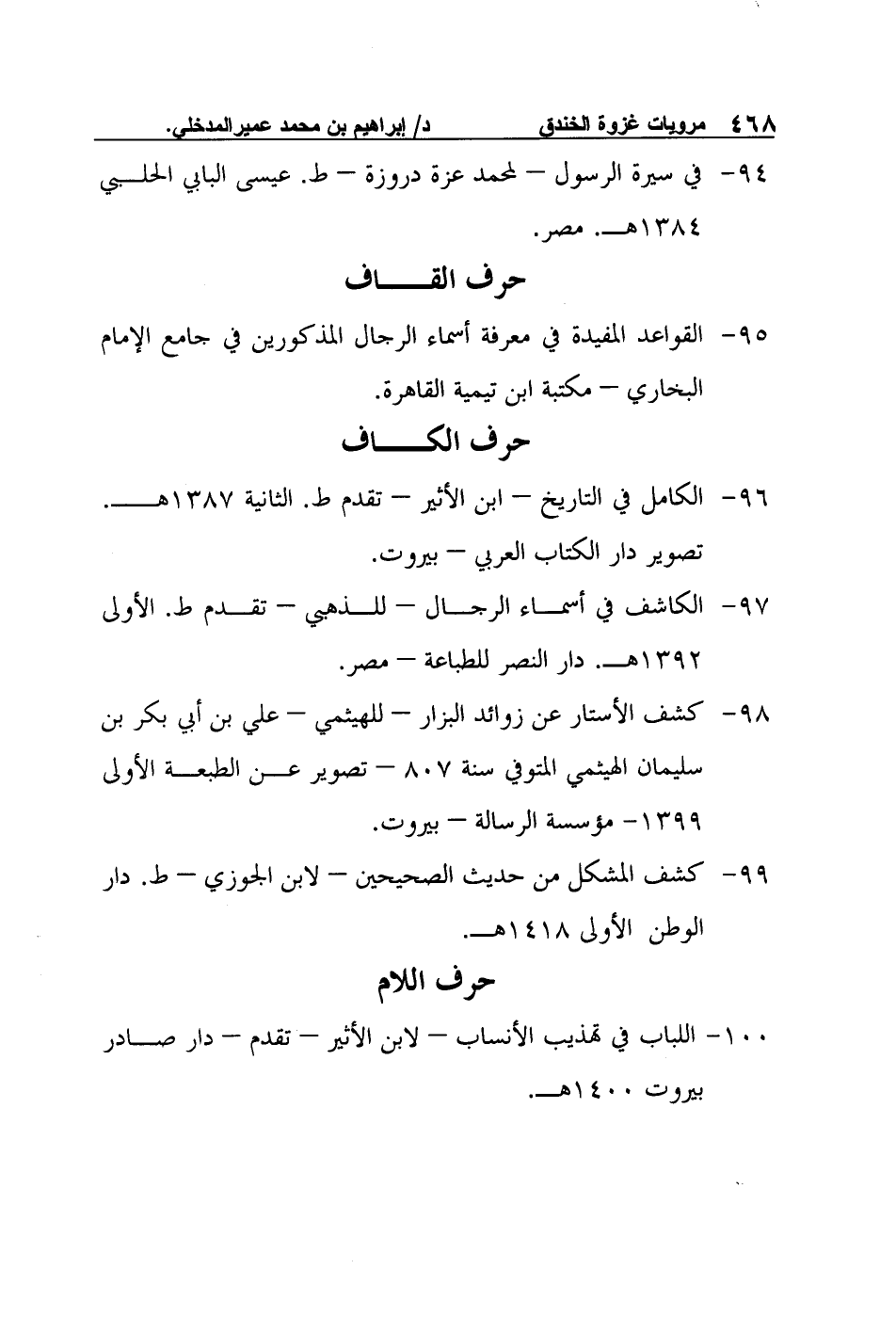 100- اللباب في تهذيب الأنساب – لابن الأثير – تقدم – دار صادر بيروت 1400هـ.