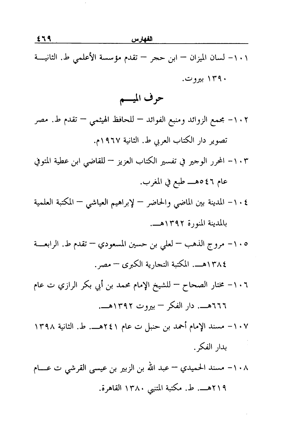 102- مجمع الزوائد ومنبع الفوائد – للحافظ الهيثمي – تقدم ط. مصر تصوير دار الكتاب العربي ط. الثانية 1967م.