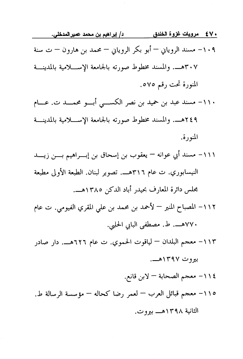 109- مسند الروياني – أبو بكر الروياني – محمد بن هارون – ت سنة 307هـ. والمسند مخطوط صورته بالجامعة الإسلامية بالمدينة المنورة تحت رقم 575.