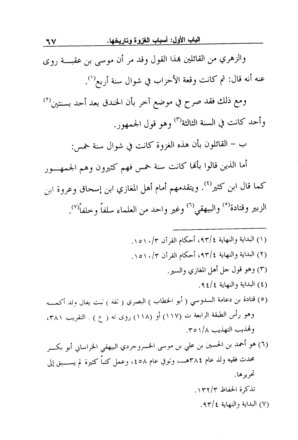 أما الذين قالوا بأنها كانت سنة خمس فهم كثيرون وهم الجمهور كما قال ابن كثير4. ويتقدمهم أمام أهل المغازي ابن إسحاق وعروة ابن الزبير وقتادة5 والبيهقي6 وغير واحد من العلماء سلفاً وخلفاً7.