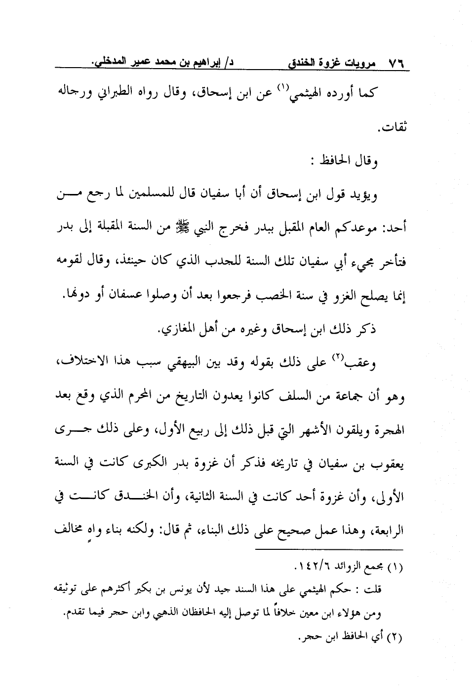 1 مجمع الزوائد 6/142. قلت: "حكم الهيثمي على هذا السند جيد لأن يونس بن بكير أكثرهم على توثيقه ومن هؤلاء ابن معين خلافاً لما توصل إليه الحافظان الذهبي وابن حجر فيما تقدم".