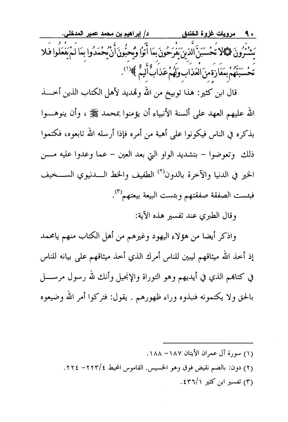 قال ابن كثير: "هذا توبيخ من الله وتهديد لأهل الكتاب الذين أخذ الله عليهم العهد على ألسنة الأنبياء أن يؤمنوا بمحمد صلى الله عليه وسلم، وأن ينوهوا بذكره في الناس فيكونوا على أهبة من أمره فإذا أرسله الله تابعوه، فكتموا ذلك وتعوضوا - بتشديد الواو التي بعد العين - عما وعدوا عليه من الخير في الدنيا والآخرة بالدون2 الطفيف والخط الدنيوي السخيف فبئست الصفقة صفقتهم وبئست البيعة بيعتهم"3.