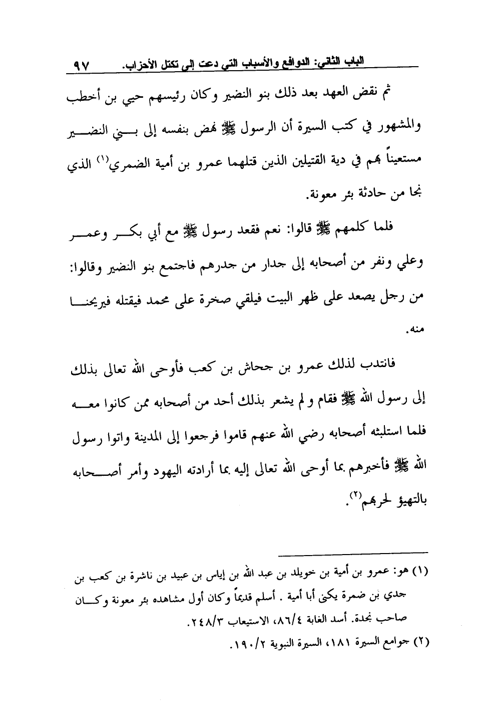1 هو: عمرو بن أمية بن خويلد بن عبد الله بن إياس بن عبيد بن ناشرة بن كعب بن جدي بن ضمرة يكنى أبا أمية. أسلم قديماً وكان أول مشاهده بئر معونة وكان صاحب نجدة. أسد الغابة 4/86، الاستيعاب 3/248.