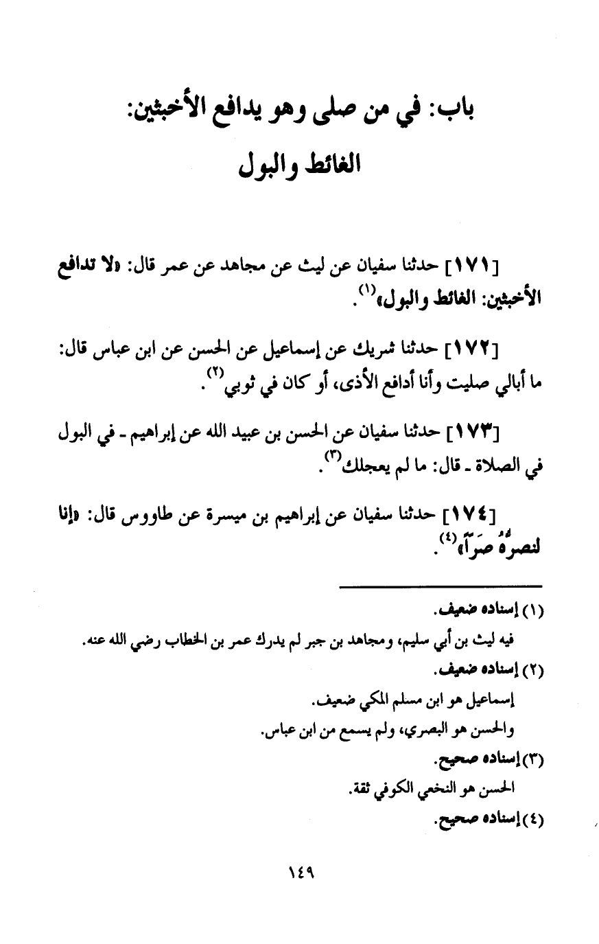 168 - حَدَّثَنَا حَسَنُ بْنُ صَالِحٍ، عَنْ سَلَمَةَ بْنِ كُهَيْلٍ، عَنْ سَعِيدِ بْنِ جُبَيْرٍ، قَالَ: «كَانَ ابْنُ عُمَرَ وَابْنُ عَبَّاسٍ §يَقْرَآنِ وَهُمَا عَلَى غَيْرِ وُضُوءٍ»