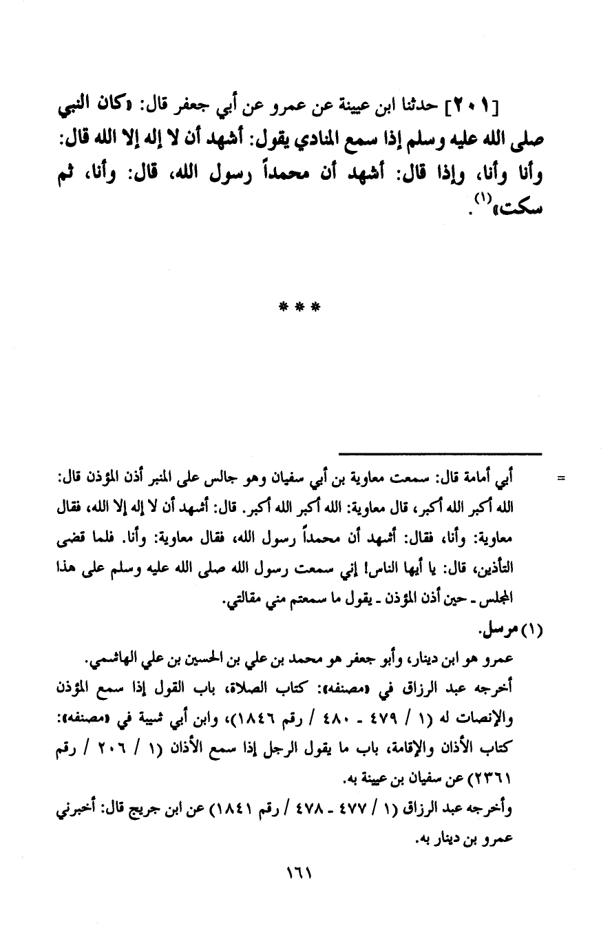 197 - حَدَّثَنَا شَرِيكٌ، عَنْ عَاصِمٍ، عَنِ الْمُسَيِّبِ بْنِ رَافِعٍ، عَنْ عَبْدِ اللَّهِ، قَالَ: «§مِنَ الْجَفَاءِ أَنْ لَا تَقُولَ مِثْلَ مَا يَقُولُ الْمُؤَذِّنُ»