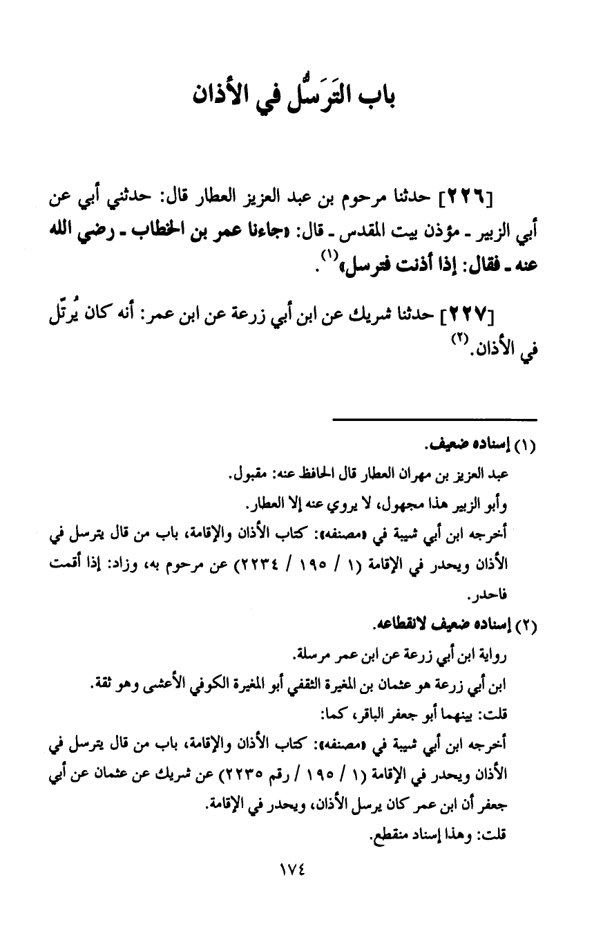 222 - حَدَّثَنَا حَفْصُ أَبُو عَمْرٍو، عَنْ أَبِي الزَّعْرَاءِ، عَنْ أَبِي الْأَحْوَصِ، أَنَّهُ قَالَ لِمُؤَذِّنِهِ: «§لَا تُؤَذِّنْ حَتَّى يَطْلُعَ الْفَجْرُ»