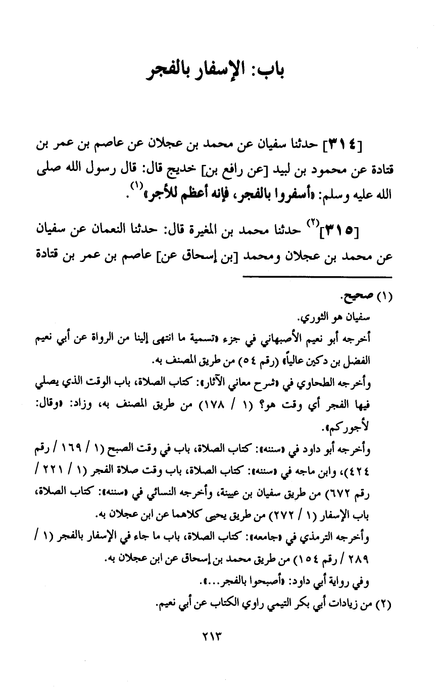 312 - حَدَّثَنَا حَسَنٌ، عَنْ عَبْدِ الْعَزِيزِ بْنِ رُفَيْعٍ، قَالَ: قَالَ النَّبِيُّ صَلَّى اللهُ عَلَيْهِ وَسَلَّمَ قَالَ: «§عَجِّلُوا صَلَاةَ الْعَصْرِ فِي يَوْمِ الْغَيْمِ»