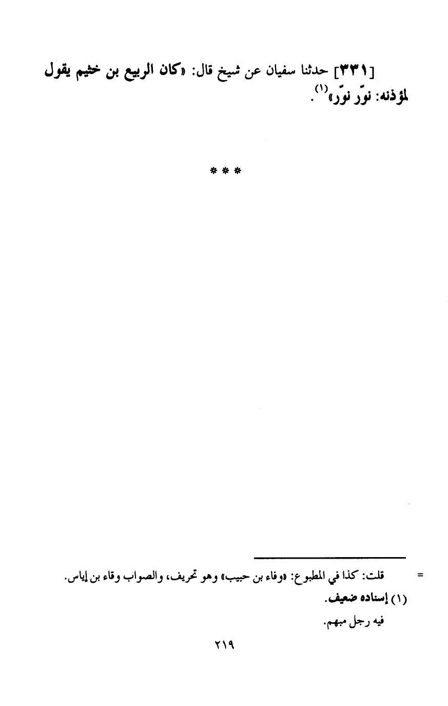 327 - حَدَّثَنَا سُفْيَانُ، عَنْ عُبَيْدٍ الْمُكْتِبِ، قَالَ: قَالَ لِي إِبْرَاهِيمُ: «§نَوِّرْ نَوِّرْ» . -[218]-