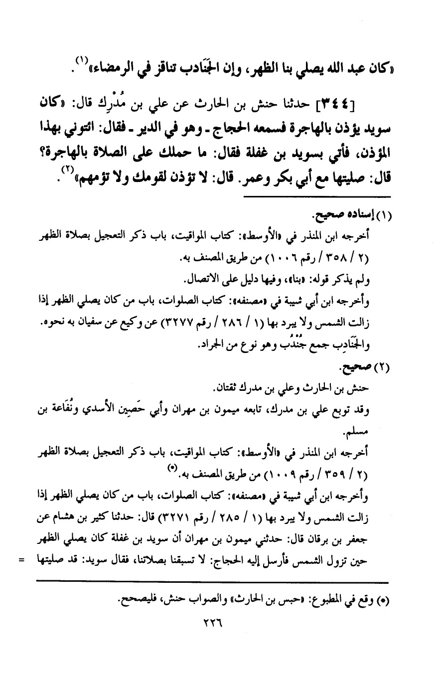 340 - حَدَّثَنَا إِسْرَائِيلُ، عَنْ حَكِيمِ بْنِ حُبَيْرٍ، عَنْ إِبْرَاهِيمَ، عَنْ الْأَسْوَدِ، عَنْ عَائِشَةَ، قَالَتْ: «§مَا صَلَّى أَحَدٌ - يَعْنِي الظُّهْرَ - إِلَّا بَعْدَ رَسُولِ اللَّهِ صَلَّى اللهُ عَلَيْهِ وَسَلَّمَ مِنِ اسْتِعْجَالِهِ لَهَا» ، مَا اسْتَثْنَتْ أَبَا بَكْرٍ وَلَا عُمَرَ