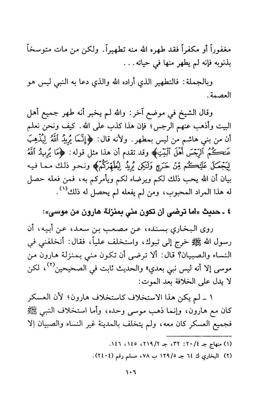 4- حديث: «أما ترضى أن تكون مني بمنزلة هارون من موسى» :