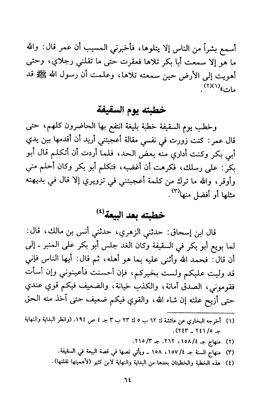 (¬4) هذه الخطبة والخطبتان بعدها من البداية والنهاية لابن كثير (لأهميتها نقلتها) .