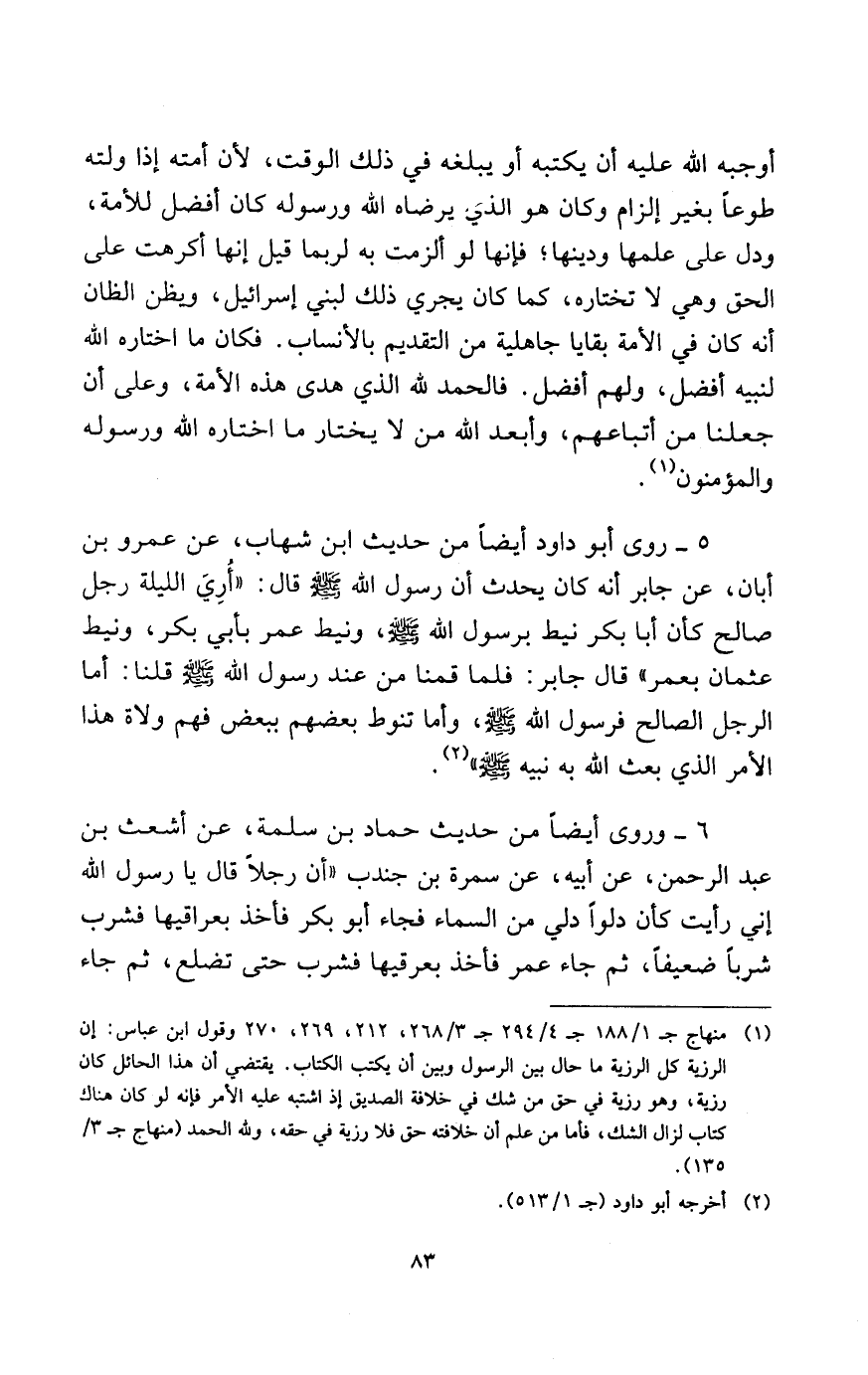 (¬1) منهاج جـ1/188 جـ 4/ 294 جـ3/268، 212، 269، 270 وقول ابن عباس: إن الرزية كل الرزية ما حال بين الرسول وبين أن يكتب الكتاب. يقتضي أن هذا الحائل كان رزية، وهو رزية في حق من شك في خلافة الصديق إذ اشتبه عليه الأمر فإنه لو كان هناك كتاب لزال الشك، فأما من علم أن خلافته حق فلا رزية في حقه، ولله الحمد (منهاج جـ3/ 135.