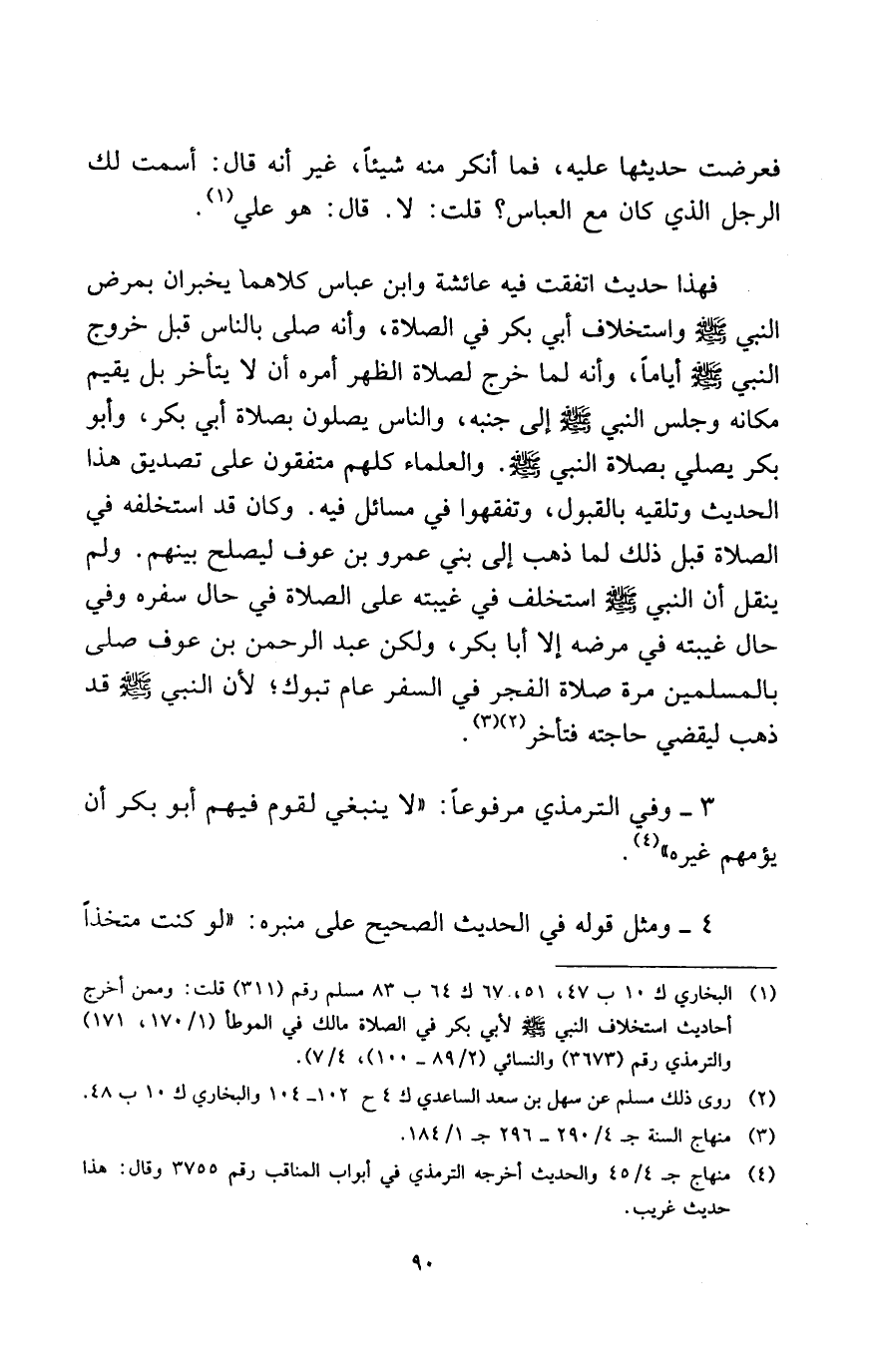 (¬1) البخاري ك 10 ب47، 51، 67 ك 64 ب 83 مسلم رقم (311) قلت: وممن أخرج أحاديث استخلاف النبي - صلى الله عليه وسلم - لأبي بكر في الصلاة مالك في الموطأ (1/170، 171) والترمذي رقم (3673) والنسائي (2/89-100) ، 4/7.