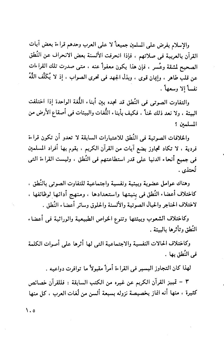 والتفاوت الصوتى فى النطق قد نجده بين أبناء اللّغة الواحدة إذا اختلفت البيئة، ولا نعد ذلك لحنا، فكيف بأبناء اللّغات والبيئات فى أصقاع الأرض من المسلمين؟