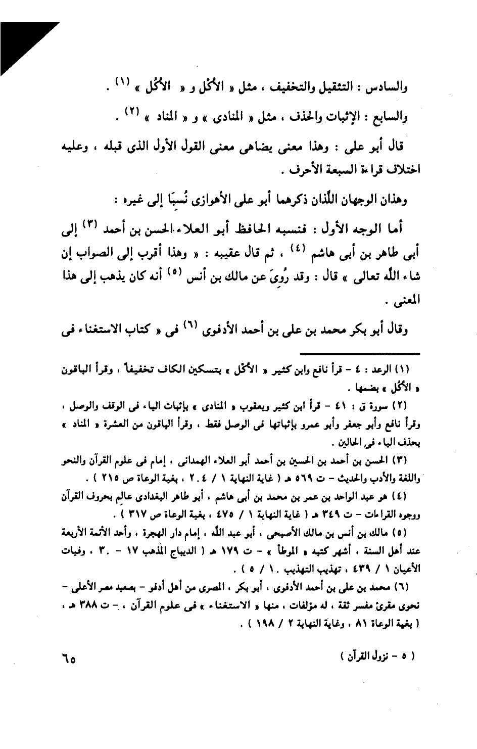 (6) محمد بن علي بن أحمد الأدفوي، أبو بكر، المصرى من أهل أدفو- بصعيد مصر الأعلى- نحوي مقرئ مفسر ثقة، له مؤلفات، منها «الاستغناء» فى علوم القرآن،- ت 388 هـ، (بغية الوعاة 81، وغاية النهاية 2/ 198).