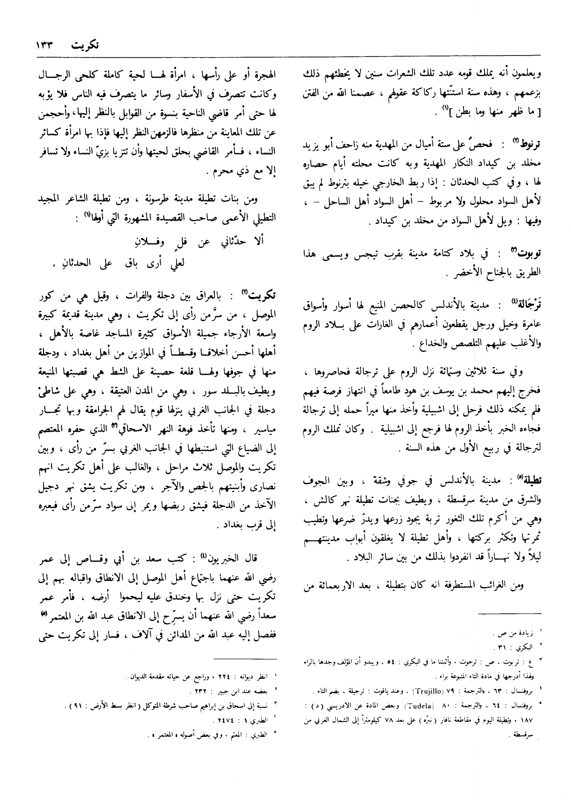 (4) بروفنسال: 63، والترجمة: 79 (Trujillo) ، وعند ياقوت: ترجيلة، بضم التاء.