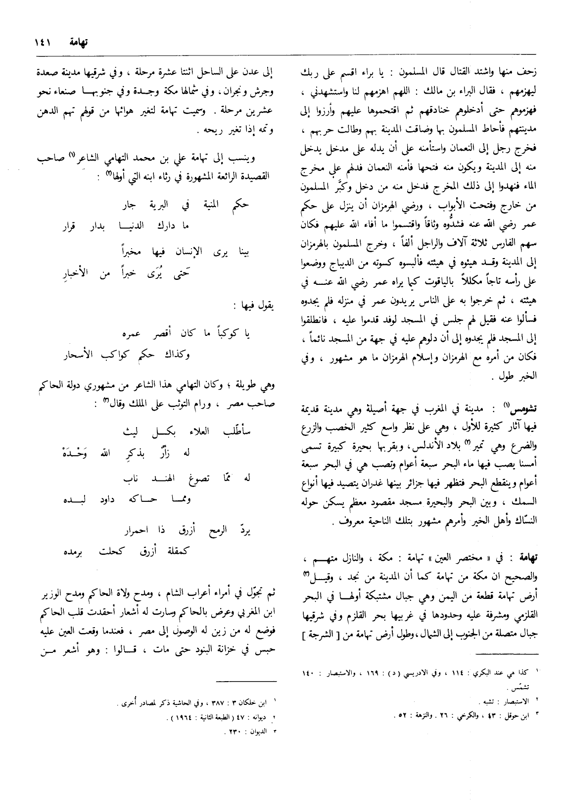 يا كوكباً ما كان أقصر عمره ... وكذاك حكم كواكب الأسحار وهي طويلة، وكان التهامي هذا الشاعر من مشهوري دولة الحاكم صاحب مصر، ورام التوثب على الملك وقال (6) :